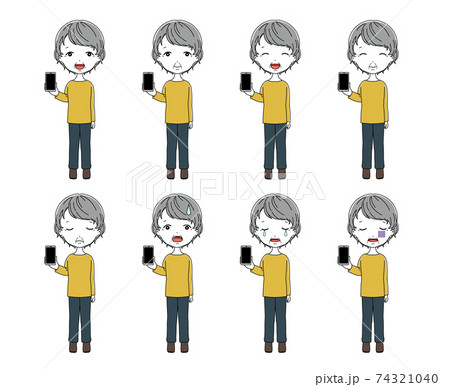 スマホの画面を見せているおばあちゃんの全身イラストセット