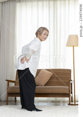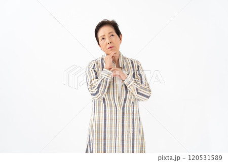 マスクをつけた笑顔や困った表情のおばあちゃんの全身イラストセット