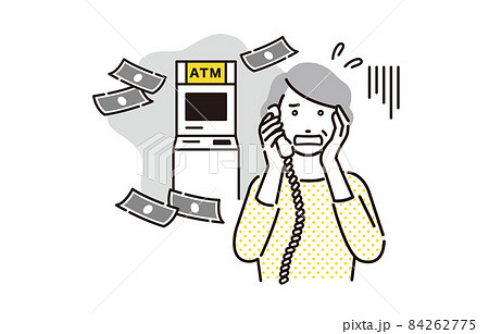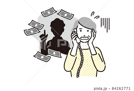 シンプル イラスト 振り込め詐欺にあうシニアの女性 人物