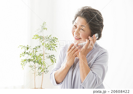 ポートレート スマホで通話するシニア女性