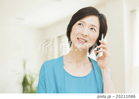 スマホで通話するミドル女性