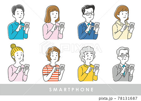 スマートフォンを操作している人々のイラスト素材セット