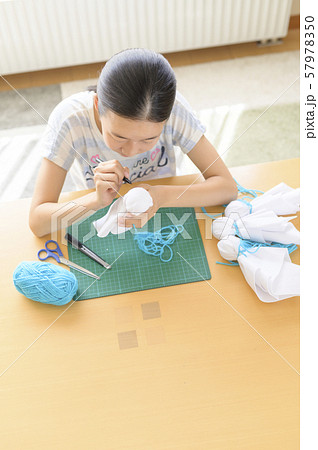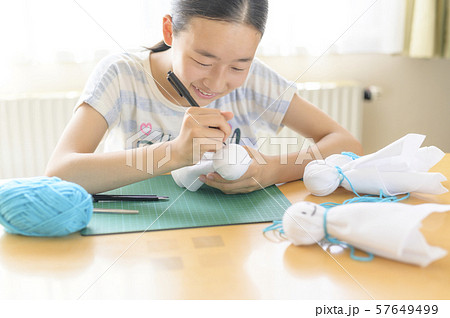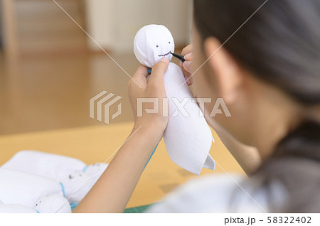 てるてる坊主を作る子ども