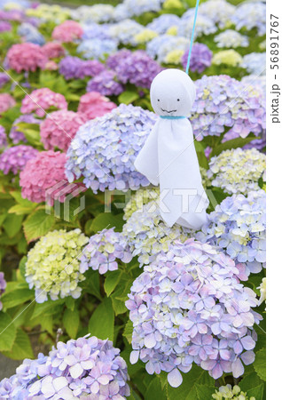 アジサイとテルテル坊主