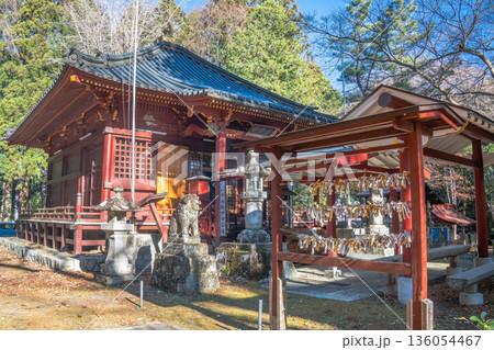 安狐山 斗蔵寺 本堂とおみくじ掛けのある境内風景