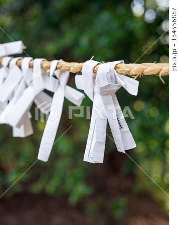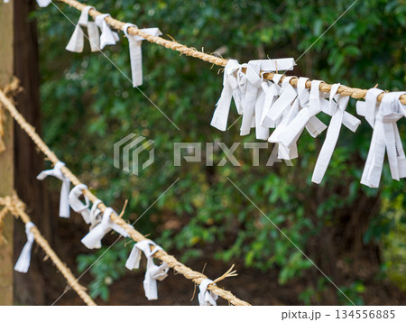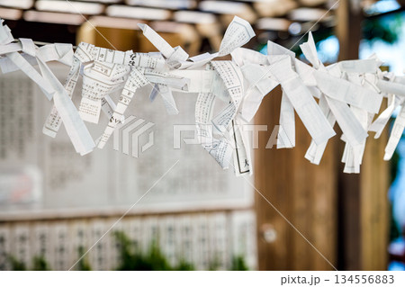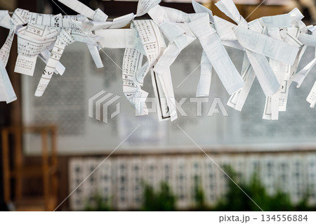 神社のおみくじ結び Japanese shrine omikuji wishes