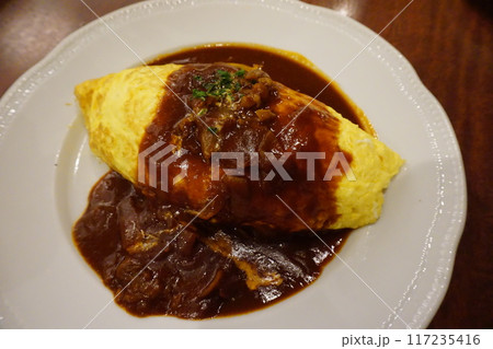 デミグラスソース ふわとろオムライス 出来たて湯気あり 洋食屋さん