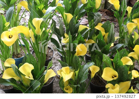 Calla lily flower plant on pot
