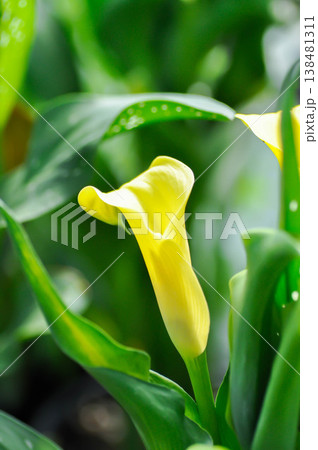 beautiful white calla lily flowers blooming in the garden.