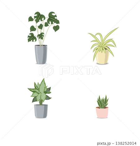 Set of houseplants in pots isolated on white background. Vector illustration.