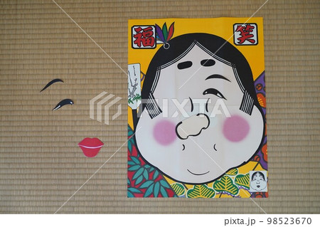 福笑い、ふくわらい、ゲーム、お正月、おかめ、日本、伝統、古来、古い、昔、遊び、子供、正月、ボードゲー