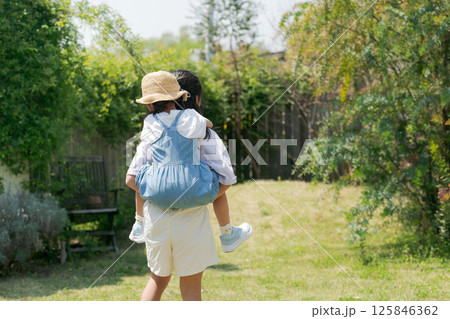 妹をおんぶする女の子