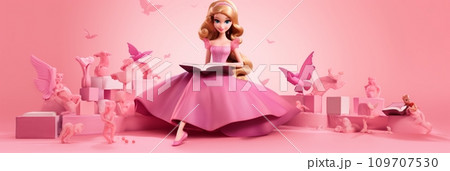 Beautiful girl dolls in a pink dress