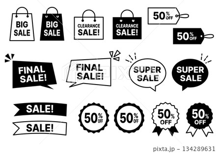 セール割引率(10〜90%OFF)アイコンラベルセット 白・黒