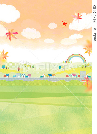 秋の街並 行楽日和 背景素材