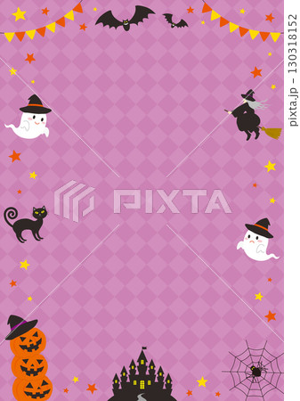 ハロウィンをイメージした背景が格子模様の縦型のフレーム_紫