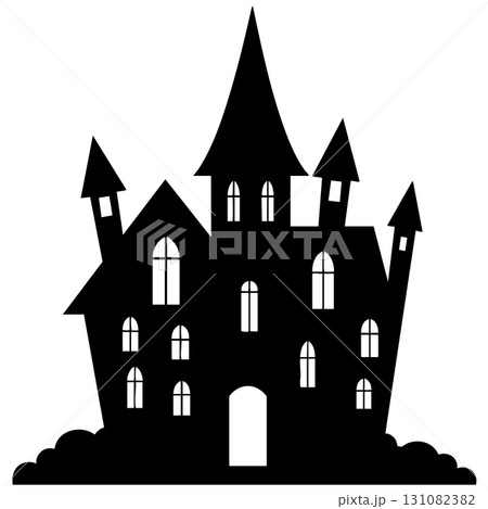 ハロウィン おばけ屋敷 シルエット イラスト素材
