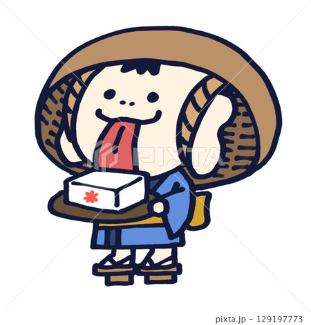 もみじ豆腐を持った豆腐小僧のデフォルメイラスト
