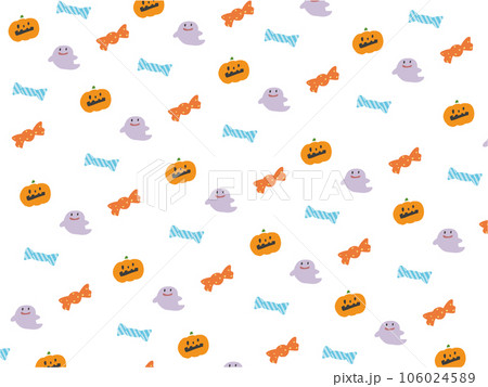 ハロウィンのかぼちゃとおばけとキャンディーの手描き風かわいい壁紙イラスト