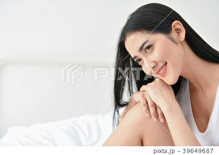 Lifestyle Concept. Cute Asian girl in night dress. Beautiful asi