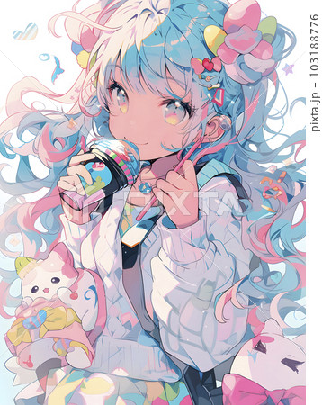 レインボカラーが印象的なゆるふわドリーミーな女子「AI生成画像」