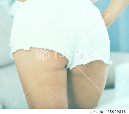 Female buttocks in white shorts