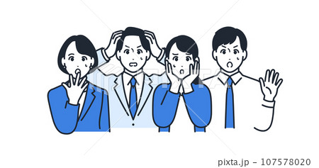 青ざめる4人の会社員のシンプルなベクターイラスト素材