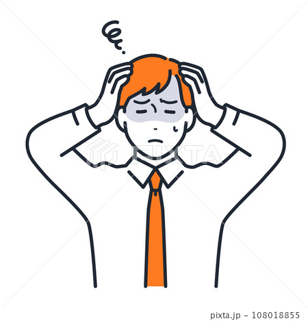 頭を抱えて悩む若いビジネスマンのシンプルなベクターイラスト素材
