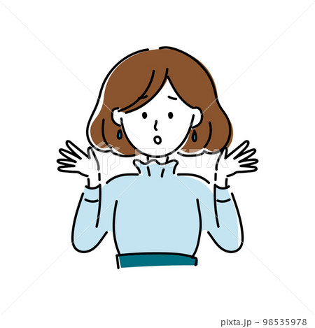 水色の服を着たボブで茶髪の女性がお手上げ状態のアイコン