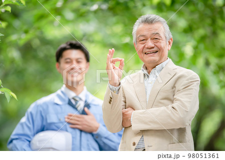 作業服の男性とシニア男性 OK