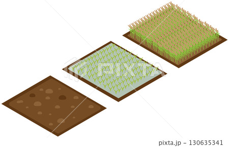 アイソメトリックな季節ごとの田んぼをイメージした素材セット