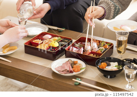お正月の家族団欒 おせち