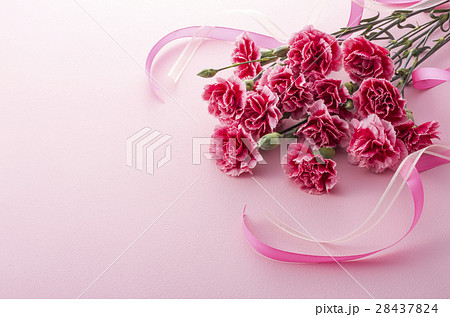 白バックに咲くピンクの花のクローズアップ 春のお祝いイメージ