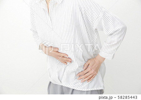 腹痛がする中年女性 白背景 顔無し