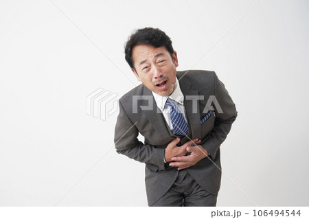 腹痛のミドルエイジのビジネスマン 白背景 顔無し