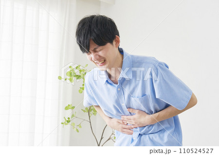 自宅で腹痛がする男性
