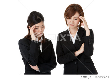 頭痛で悩んでいる二人の若いビジネスウーマン