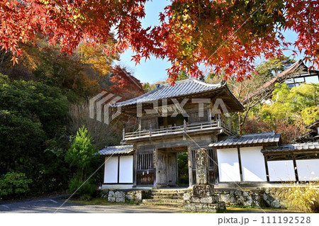 秋の秩父札所32番法性寺の鐘楼門に楓