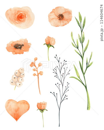 Watercolor clip art of spring flowers beige eustoma,twigs