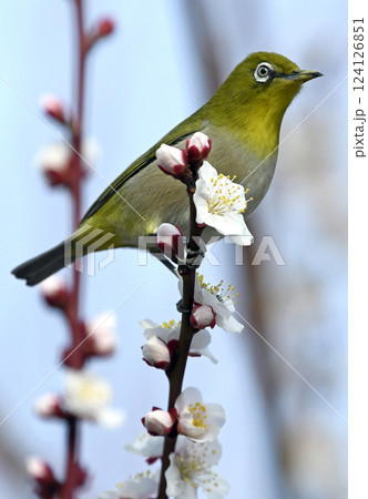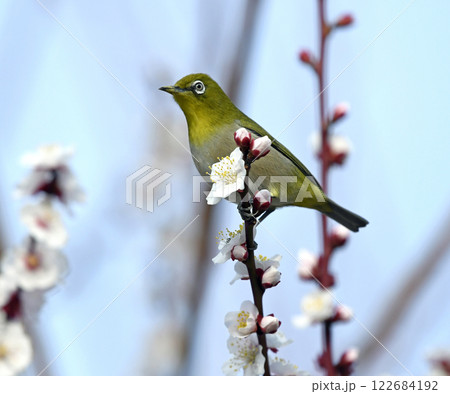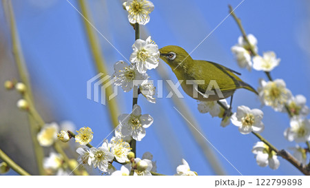 満開の白梅にメジロさん (春イメージ)( 小春日和イメージ )