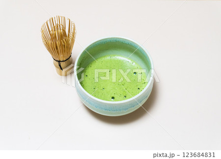 お茶を点てる。茶筅と緑茶。ベクターイラスト