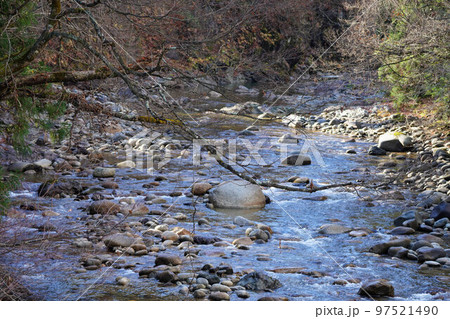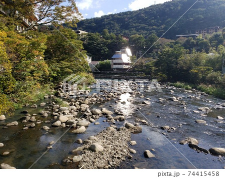 初冬の箱根の河原。日差しが水面に映えて、哀愁のあるあかるい風景です。散歩コースです。