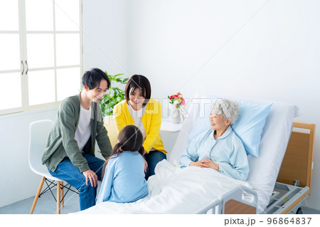 高齢の入院患者を見舞う家族