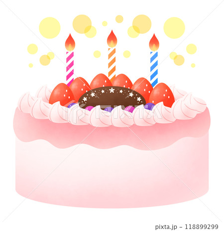バースデーケーキのイラスト_ホールケーキ_ロウソクあり_2