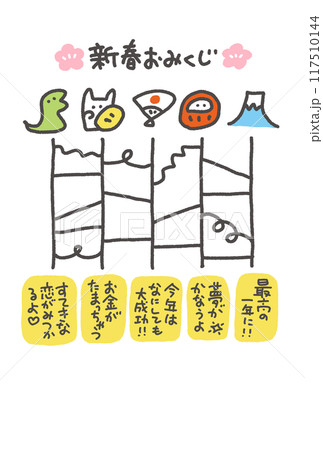あみだくじの年賀イラスト 年賀状 2025 縁起物 おみくじ