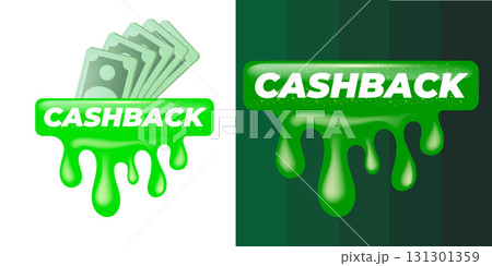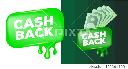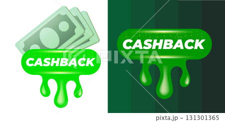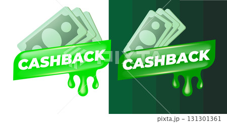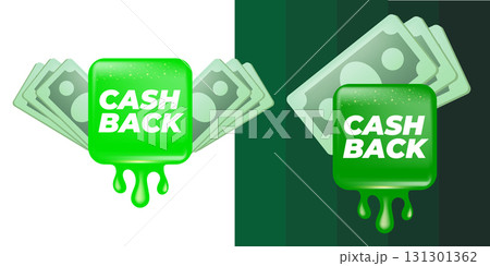 Vector cash back green icon isolated on white background. CASHBACK glossy banner design template with paper money. Business marketing icon