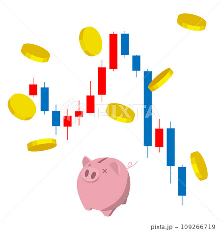 株が暴落して豚の貯金箱からお金がなくなるイラスト。投資で大損したイメージ。