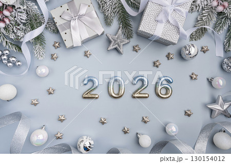 Christmas ornaments with pine branches, holiday decoration, New Year 2026
