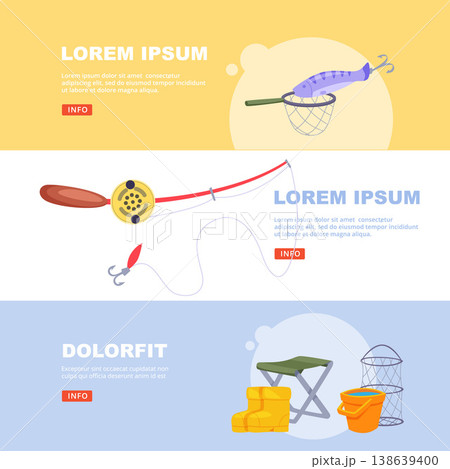 Fishing banners. professional fishing gear collection. vector illustration of cartoon fishing rod