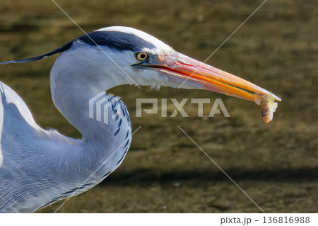 おやつ感覚で小魚を食べるアオサギ